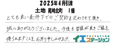 各務原市の不動産|イエステーション各務原店 > お客様の声一覧 > Ⅰ 様(2025年4月引渡 土地 尾崎北町)