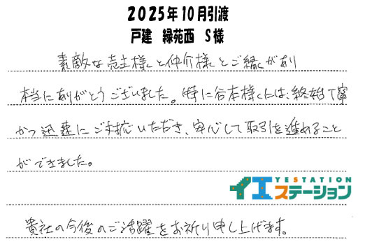 各務原市の不動産|イエステーション各務原店 > お客様の声一覧 > S様(2025年10月引渡 戸建 緑苑西)