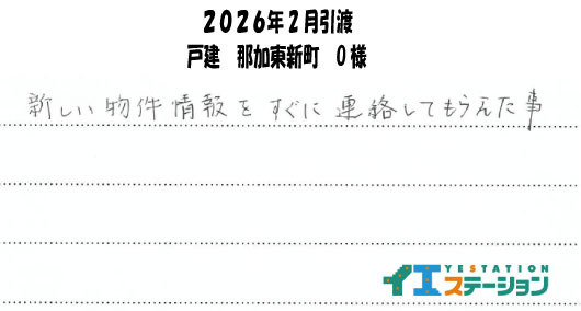 各務原市の不動産|イエステーション各務原店 > お客様の声一覧 > O様(2026年2月引渡 戸建 那加東新町)